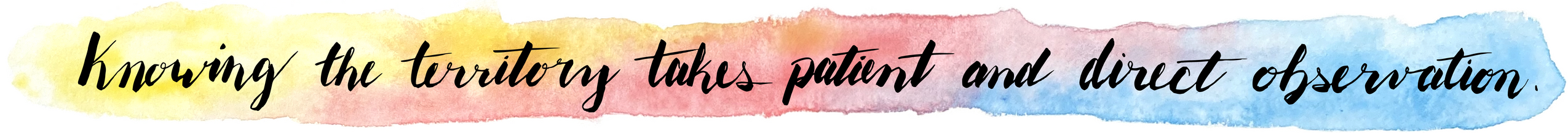 Knowing the territory takes patient and direct observation. Let us begin, then, with “knowing”.